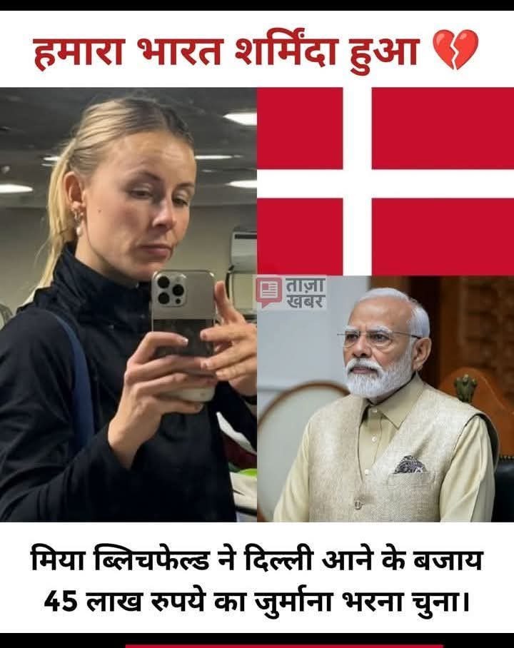 डेनमार्क की बैडमिंटन स्टार #मिया_ब्लिचफेल्ड ने दिल्ली आने के बजाय 45 लाख रुपये का जुर्माना भरना बेहतर समझा।