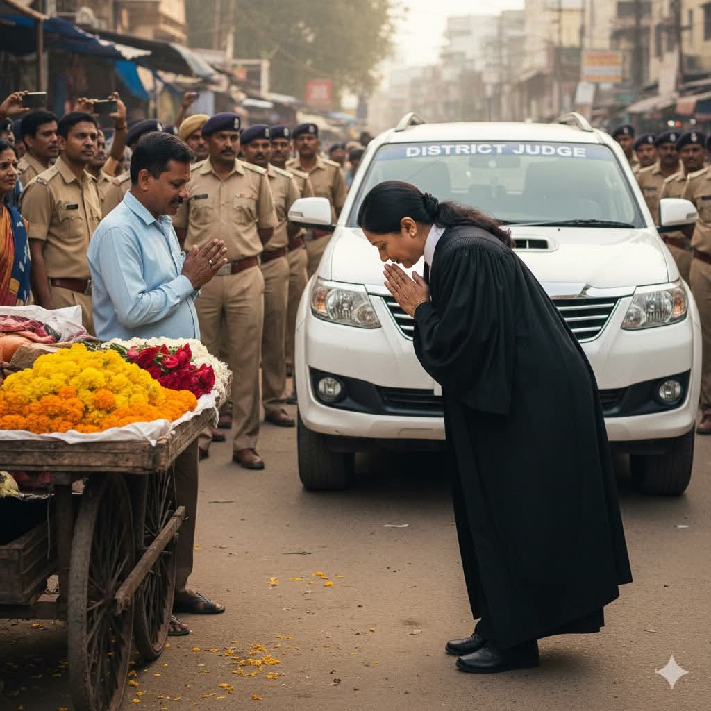 वक्त का पहिया घूमा। अनुराधा अब जिले की मुख्य न्यायाधीश बन चुकी थीं। एक दोपहर, सरकारी प्रोटोकॉल के तहत उन्हें शहर की पुरानी फूल मंडी के पास से गुजरना था। अचानक उनकी गाड़ी रुकी। सायरन की आवाज सुनकर मंडी में सन्नाटा छा गया। लोग कतार में खड़े हो गए, क्योंकि जिले की सबसे बड़ी जज गाड़ी से उतर रही थीं।