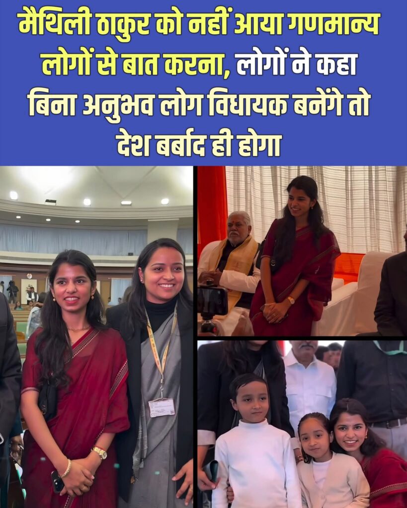 भीड़ में गिफ्ट मिला तो मैथिली ठाकुर बच्चों की तरह करने लगी और सभी गणमान्य लोग उनकी तरफ अटपटी निगाहों से देखने लगे। दरअसल हुआ ये कि बिहार विधानसभा स्थापना दिवस के उपलक्ष्य में एक भव्य कार्यक्रम का आयोजन किया गया था जिसमें माननीय लोकसभा अध्यक्ष श्री ओम बिरला जी, माननीय केंदीय मंत्री श्री किरण रिजिज जी सहित बड़े बड़े गणमान्य और सभी विधायक आए हुए थे और वहां पर विधायक मैथिली ठाकुर जी भी थी, तो वहां पर मैथिली ठाकुर बच्चों जैसा व्यवहार और बॉडी लैंग्वेज का प्रदर्शन करने लगी। जब उनका ये वीडियो सोशल मीडिया पर आया तो लोगों ने कहा कि मैथिली ठाकुर बिना अनुभव के विधायक बनी है, इनका दिमाग अभी राजनीति को लेकर डेवलप नहीं हुआ है। लेकिन सिफारिश और पैसों से अगर देश में ऐसे ही नेता बनते रहे तो देश का भविष्य अंधकार में ही होगा।
